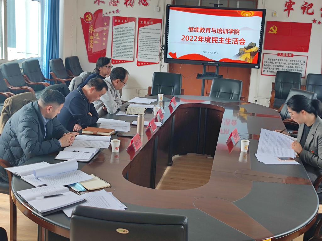 2月27日下午,继续教育与培训学院2022年度民主生活会在城西校区理科楼300会议室召开,校督导组成员、党委组织部卢雪盈出席会议。会议由学院党总支副书记李芹主持,学院领导班子成员、党员代表参加会议。