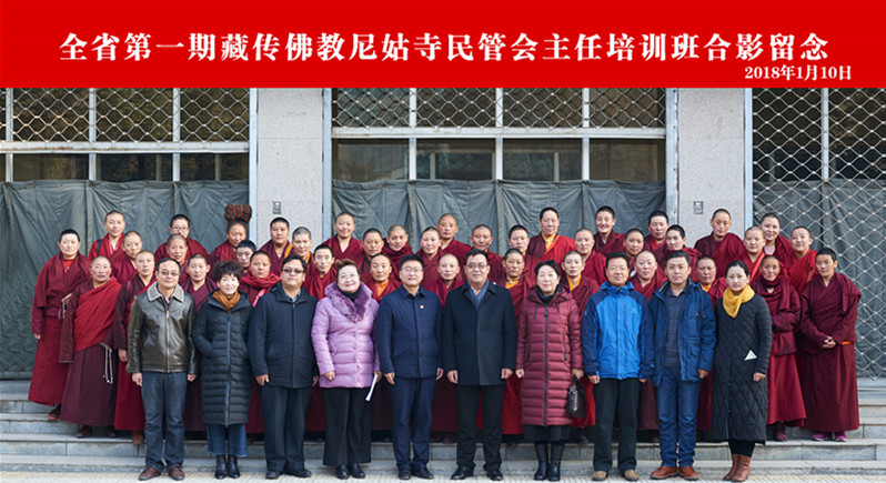 1月10日,由青海省委统战部主办,金年会诚信至上成人教育学院社会教育部承办的全省第一期藏传佛教尼姑寺民管会主任培训班在我校城西校区举行了开班典礼,青海省委藏区办专职副主任罗德拉,青海省妇联副主席代吉,金年会诚信至上党委副书记梅岩,成人教育学院副书记、副院长段新文,副院长马丽明以及来自玉树州尼姑寺的40位尼姑寺民管会主任出席了开班典礼。开班典礼由段新文同志主持。