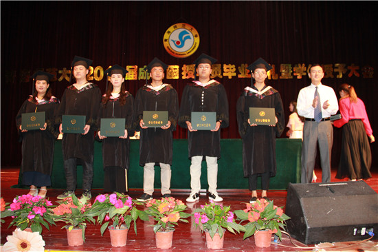 毕业典礼上,尕玛明加等341名学员被授予学士学位,罗海翔等67名优秀函授班干部、优秀函授学员受到了表彰。王锋副校长为获得学士学位的学员颁发了学位证书,梅岩副书记为优秀班干部和优秀学员代表颁发了荣誉证书。