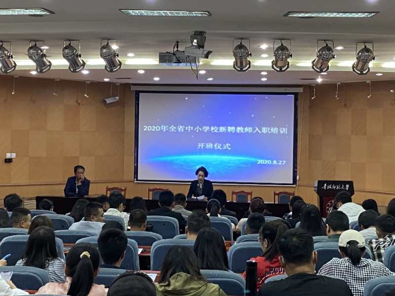 2020年8月27日上午,由青海省教育厅主办、金年会诚信至上继续教育与培训学院承办的“历史、地理、生物学科”与“物理、化学、科学、小学教育学科”新入职教师岗前培训”开班仪式,分别在海湖新区星程酒店3号会议室与金年会诚信至上城西校区田家炳书院1楼学术报告厅举行,来自全省各地的412名新聘教师参加了开班典礼。