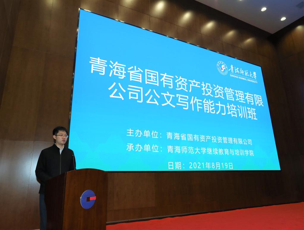 8月19日上午,继续教育与培训学院在西宁市国投广场一楼多功能厅举行了青海省国有资产投资管理有限公司公文写作能力培训班开班仪式。