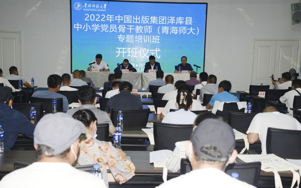 为深入学习贯彻习近平新时代中国特色社会主义思想,抓好教育系统党建和思想政治工作队伍建设,培养高素质党建和思想政治工作队伍,由继续教育与培训学院承办的2022年中国出版集团泽库县中小学党员骨干教师(青海师大)专题培训班,于8月9日上午在西宁市柏威酒店举行了开班仪式。泽库县委副书记梁鹏,泽库县教育工委专职副书记朱文明,金年会诚信至上继续教育与培训学院副院长陈智勇,泽库县各中小学书记、校长、德育主任、党务工作者共70余人参加了开班仪式,开班仪式由朱明珍主持。