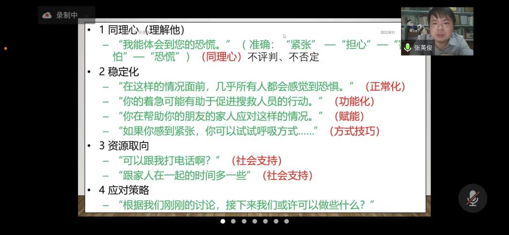 本次培训邀请北京师范大学心理学部心理健康教育与咨询中心张英俊老师就如何进行受灾地区学生的心理安抚和心理调适,为志愿者做了丰富而实用的讲解和指导。参与培训的志愿者受益匪浅,达到了预期的目的,为即将开展的大通县青山乡中心学校师生心理疏导打下了良好的基础。